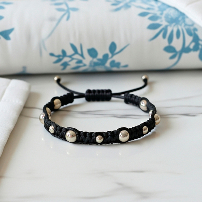 Pulsera elaborada en hilo terlenca macramé y balines de acero