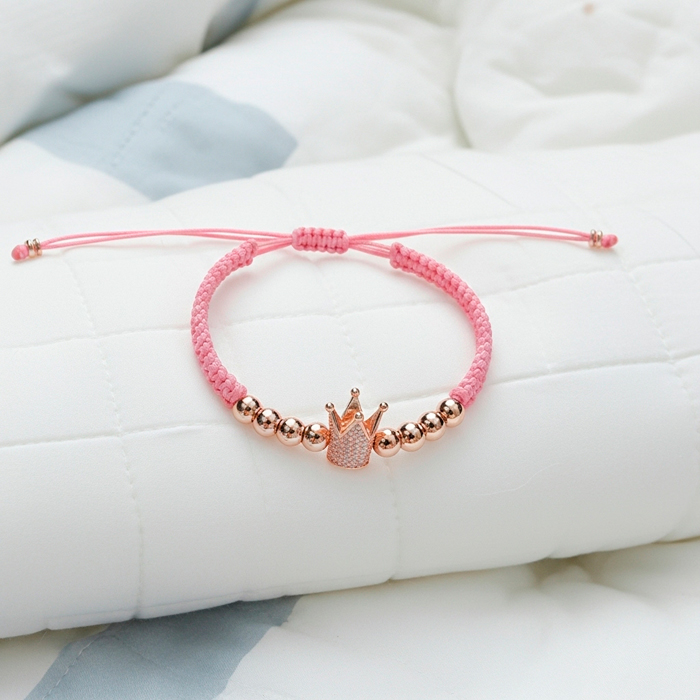 Pulsera elaborada en hilo macramé, corona en rodio y balines de acero